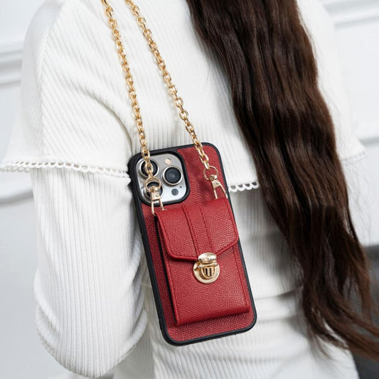 Handcrafted Epsom Leather iPhone Case with Zip Wallet & Crossbody Strap