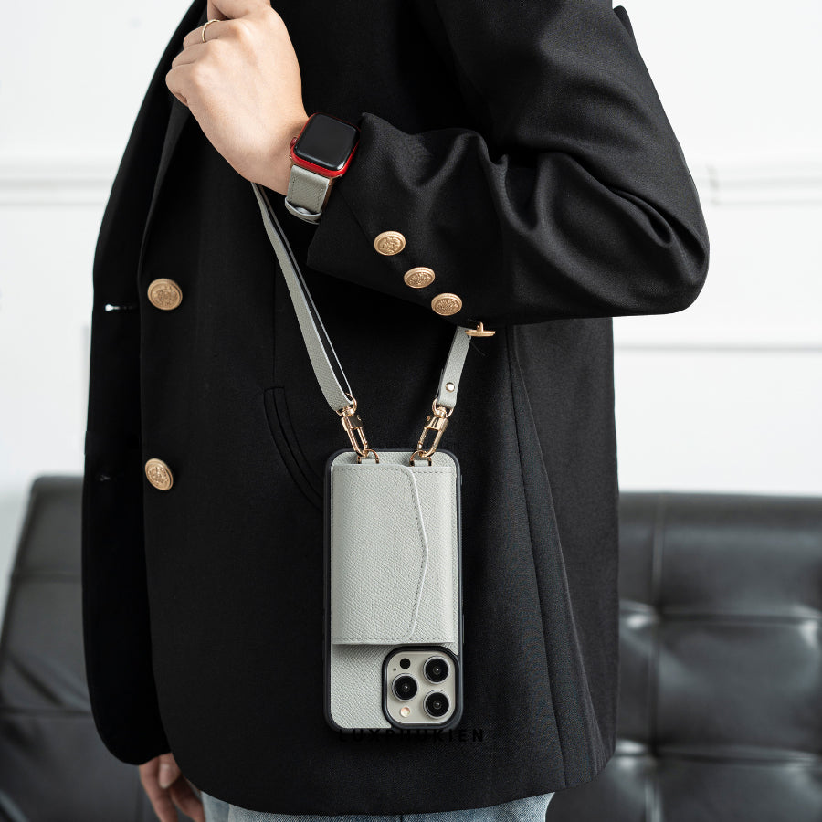 Experience luxury in your hands with our meticulously handcrafted Epsom leather iPhone case. Designed in Vietnam and expertly crafted by master artisans, this premium case combines the world-renowned Epsom leather with functional elegance - featuring a built-in zip wallet and detachable crossbody strap for ultimate versatility.