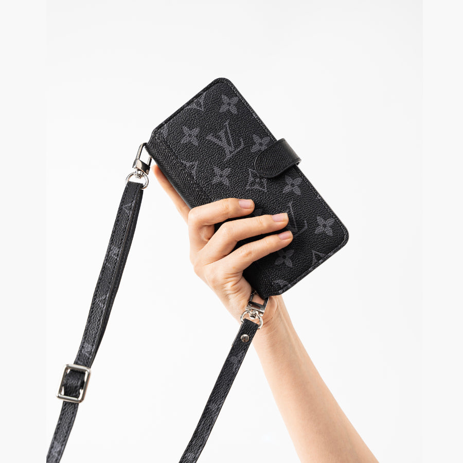 Handmade LV Leather iPhone Crossbody Wallet Case – Authentic Monogram Canvas
